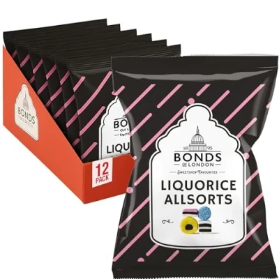 VARIETY PACK: Indulge in a pack of 12 traditional and retro liquorice allsorts bags, a sweetshop favourite for the whole family to enjoy CLASSIC FLAVOURS: Nostalgic chewy treats with no artificial colours or flavours, perfect for sharing and bringing back memories of yesteryear MULTIPACK VALUE: With 12 bags in each pack, they’re ideal for parties, hampers, or keeping your sweet stash well-stocked BRITISH CONFECTIONERY HERITAGE: Crafted by Bonds of London, a trusted name in UK sweets since 1895—quality and tradition in every bag! IRRESISTIBLE TREATS: Prepare yourself for a burst of flavour as you bite into these iconic retro sweets from Bonds of London; traditional, chewy and loved by all ages