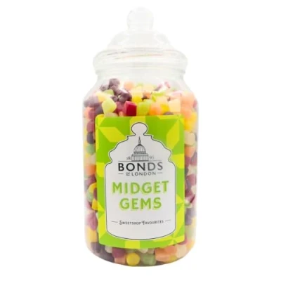 Bonds of London Midget Gems Jar, Fruit Flavoured Retro Gummy Gift Sweets, 2.5 Kg (Pack 1)