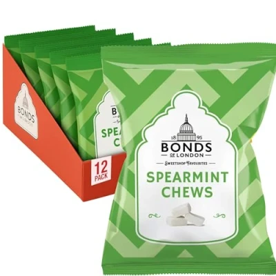 REFRESHING SPEARMINT FLAVOUR: Enjoy the crisp, minty taste that freshens your breath and satisfies your sweet tooth—all in one chewy bite! RETRO SWEET REVIVAL: Relive the charm of old-school confectionery with these classic spearmint chews—nostalgia never tasted so fresh! VALUE: A multipack offering you great value for money on this traditional British sweet favourite - no artificial colours or flavours added SWEETSHOP FAVOURITE: Bonds of London has been a beloved name in retro sweets since 1895, bringing you the best in traditional confectionery delights VERSATILE: Carry these convenient bags around for an instant breath freshener whenever and wherever you need it; perfect for all ages to enjoy- not just kids!