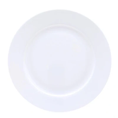 Bone china set of 6 White breakfast plates. Measures approximately 8 inches in diameter. Dishwasher safe.