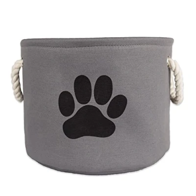 Bone Dry Paw Print Collapsible Polyester Pet Storage Bin, Round Small 12 x 9", Gray