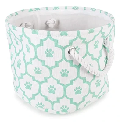 Bone Dry Paw Print Collapsible Polyester Pet Storage Bin, Round Small 12 x 9", Lattice Aqua