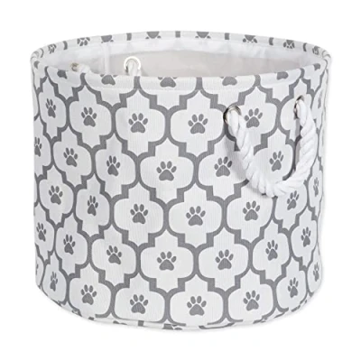 Bone Dry Paw Print Collapsible Polyester Pet Storage Bin, Round Small 12 x 9", Lattice Gray