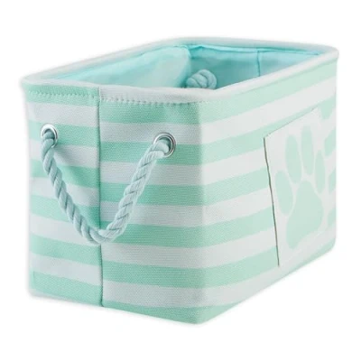 Bone Dry Pet Storage Collection Striped Paw Patch Bin, Aqua, Small Rectangle
