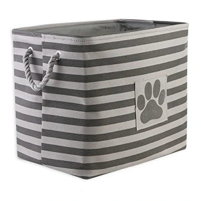 Bone Dry Pet Storage Collection Striped Paw Patch Bin, Large Rectangle, Gray