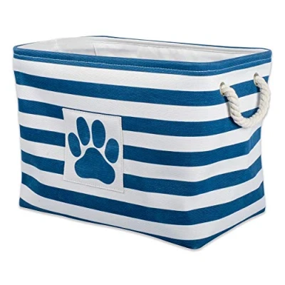 Bone Dry Striped Paw Patch Bin, Large Rectangle, Navy