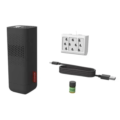 ManoManoGeneral description This Boneco P50 Air Purifier/Ionizer in Black is a personal 2-in-1 waterless aroma diffuser and air ionizer. Compact and powered by USB control, this purifier is perfect for personal use at your desk or for travel. It is easy to carry and use wherever you may be, creating a pleasant environment around you. Technical specifications Dimensions: 63 x 63 x 178 mm Operation noise level: 36 – 42 dB(A) Compatibility and accessories Supplied with a large aroma pad to disperse the scent of your chosen essential oil/perfume Includes a specially developed blend of BONECO essential oil containing 100% pure natural ingredients Usage The ionizer generates negative ions to help reduce particles in the air and can be switched on or off as needed Single button control for easy and intuitive operation Stable silicon base allows for use in an upright or laid flat position