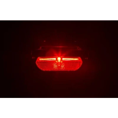 Super bright LED rear light for luggage rack, BUMM 2 model for hub dynamo (fine connectors). Equipped with the Stand Light function which allows the light to remain on for a few minutes when you stop and the dynamo no longer powers the light. There is also a large reflector to make the bike visible even only with car lights. Suitable for 6V current, attachment to the luggage rack with 80 mm center distance. The dimensions of the product are: 111x36x39 mm, weight 35 g. Item weight: 0.5 kg Colour: red