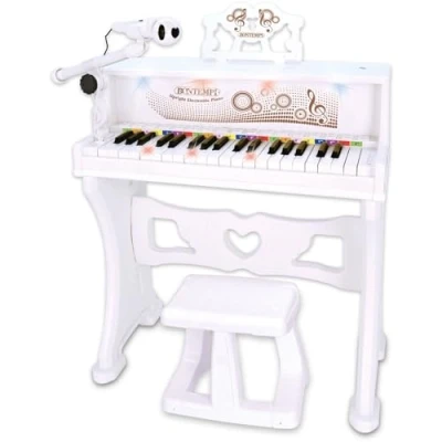 This electronic grand piano with microphone by Bontempi makes a wonderful first instrument for little ones 37 keys, light effects and adjustable volume and tempo 8 sounds, 4 rhythms, 8 pre-recorded melodies and 4 pads to either play drums or to produce animal voice Any key play and record and play back tunes Bluetooth function, Manufacturer: Bontempi