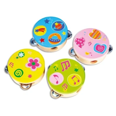 Tambourine with wooden construction with 6 cymbals Measures 100 mm length by 100 mm width by 40 mm height Recommended for 18 month and above age child, Manufacturer: I COM