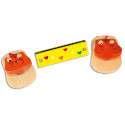 Bontempi 61 0310 Wooden Castanets and Harmonica Mix Instruments