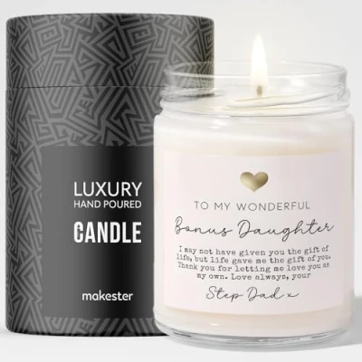 Bonus Daughter Gifts from Step Dad Luxury Soy Wax Vanilla, Jasmine, Sugared Almond Makester