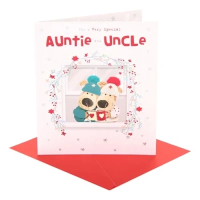 Boofle Christmas Card for Auntie & Uncle Xmas Presents Her/Him Cute Design With Envelope 18.4 x 15.9 cm