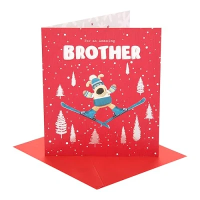 Heartfelt Gratitude For An Amazing Brother - This heartfelt Christmas greeting card for brothers expresses gratitude and appreciation, making it a perfect gift to show your feelings and strengthen your bond. Masculine Cheerful Design - This cheerful Boofle greeting card features a skiing Boofle on a red background with silver foil, perfect for expressing gratitude to an amazing brother. Comes with a red envelope. Heartfelt Wishes For A Special Brother - With its heartfelt message, "For an amazing brother, I hope you have a truly special Christmas. With lots of love, xxx," this collectable greeting card is ideal for expressing your feelings to him. Beautifully Crafted, Quality Design - This collectable greeting card is foiled, unwrapped, and thoughtfully designed as part of the popular Boofle range — the cute knitted dog loved by all the family. Each greeting card measures 16 x 18 x 0.5 centimetres or 6.25 x 7.1 x 0.25 inches and comes with a red envelope. Eco-Friendly, Letterbox-Friendly, Thoughtfully Packaged - This product comes in packaging-free form, fits through your letterbox, and can be mailed with a Standard Letter Stamp. It is made from FSC-Certified, sustainably sourced card.
