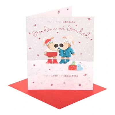 CHRISTMAS CARD - Send warm wishes this festive season with a Christmas card for friends, family, or colleagues. Whether traditional or funny, a heartfelt message will make their holiday even brighter. DESIGN - With help from adorable Boofle, wish a special grandma & grandad a merry Christmas with this cute design on premium quality card. GIFT IDEAS - No matter the occasion, a well-chosen card will make anyone's day. From birthday cards to thank you cards, our collection offers something for every occasion. SIZE - This card measures 18.4 x 15.9 cm, ample space for a personal message, and a perfect size for displaying as a keepsake in your home. HIGH QUALITY & SUSTAINABLE - Our products are crafted from high-quality material, ensuring durability and a premium feel. We use materials from responsibly managed forests and controlled sources, certified by the Forest Stewardship Council (FSC).