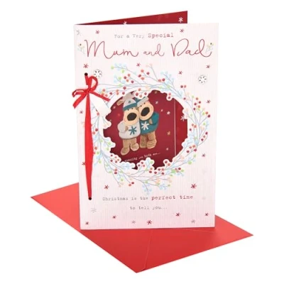 Boofle Christmas Card for Mum & Dad Xmas Presents Her/Him Cute Design With Envelope 25.4 x 16.5 cm