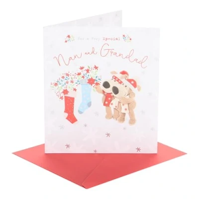 CHRISTMAS CARD - Send warm wishes this festive season with a Christmas card for friends, family, or colleagues. Whether traditional or funny, a heartfelt message will make their holiday even brighter. DESIGN - With help from adorable Boofle, wish a special nan & grandad a merry Christmas with this cute design on premium quality card. GIFT IDEAS - No matter the occasion, a well-chosen card will make anyone's day. From birthday cards to thank you cards, our collection offers something for every occasion. SIZE - This card measures 18.4 x 15.9 cm, ample space for a personal message, and a perfect size for displaying as a keepsake in your home. HIGH QUALITY & SUSTAINABLE - Our products are crafted from high-quality material, ensuring durability and a premium feel. We use materials from responsibly managed forests and controlled sources, certified by the Forest Stewardship Council (FSC).