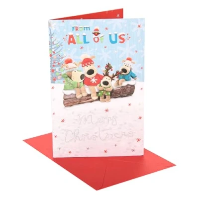 A Thoughtful Gift For Loved Ones - This cheerful Christmas greeting card is a perfect gesture from the whole family, expressing gratitude and making the recipient feel appreciated and special. Magical Cute Design - This charming Boofle Christmas card features a family of Boofles on a snowy log, with "Merry Christmas" in the snow, enhanced with silver foil, and includes a red envelope. Joyful Wishes, Love, and Cheerfulness - With its cheerful caption, "From All of Us, Merry Christmas, Wishing you all a wonderful Christmas! sending lots of love Xxx", this delightful greeting card is perfect for expressing your joy. Embossed, Foiled, Thoughtfully Designed Quality - This collectable greeting card is embossed, foiled, and thoughtfully designed as part of the popular Boofle range — the cute knitted dog loved by all the family. Each greeting card measures 15 x 23 x 0.5 centimetres or 6 x 9 x 0.25 inches and comes with a red envelope. Eco-Friendly, Postal-Compatible, Careful Packaging - This product comes in packaging-free form, fits through your letterbox, and can be mailed with a Standard Letter Stamp. It is made from FSC-Certified, sustainably sourced card.