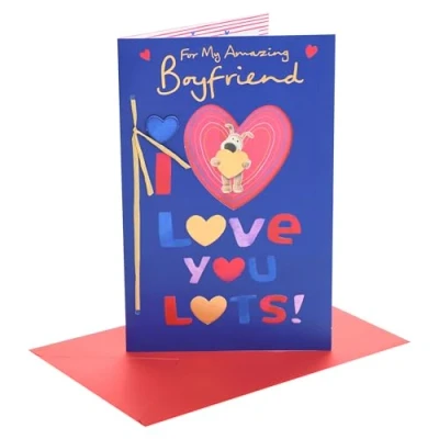 Boofle Valentine's Day Card for Boyfriend I Love You Presents Him, Boys, Men Cute Design With Envelope 16.5 x 25.4 cm