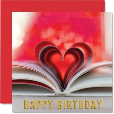 Book Birthday Cards Love Heart Reading Card Happy for Her Him Wife Husband Partner Fiance Girlfriend Boyfriend, 145mm Books Bday Greeting