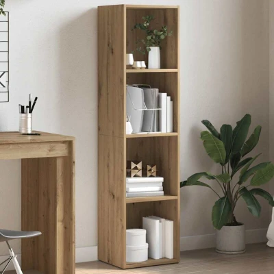 ManoManoGeneral description This book cabinet, featuring a sleek and classic design, serves as both a decorative and practical addition to your home decor. It is crafted from high-quality engineered wood, ensuring durability and resistance to moisture. Technical specifications Colour: Artisan oak Material: Engineered wood Overall dimensions: 36 x 30 x 143 cm (W x D x H) Max. weight capacity (total): 60 kg Assembly required: Yes Usage 4-Tier bookshelf: Designed with 4 tiers, providing ample space to display books, family photos, potted plants, and more. Versatile usage: Ideal for any living space as a storage solution. Easy to maintain: The smooth surface allows for easy cleaning with a damp cloth. Other information Warning: To prevent tipping, this product must be used with the provided wall attachment device.