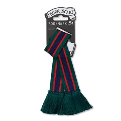 A fun and funky way to dress up your book 38cm long woven scarf including matching fringe Long enough to flop through most books - even bigger ones! Presented knotted on cool Book Scarf packaging