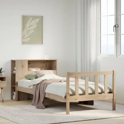ManoManoGeneral description Get a better restful night's sleep with this bookcase bed! It makes a welcoming addition to any bedroom, combining functionality with rustic charm. Technical specifications Material: Solid pinewood (untreated) Overall dimensions: 229.5 x 106 x 82 cm (L x W x H) Bed frame dimensions: 205.5 x 105.5 x 69.5 cm (L x W x H) Bookcase headboard dimensions: 106 x 24 x 82 cm (W x D x H) Suitable mattress size: 100 x 200 cm (W x L) (mattress not included) Assembly required: Yes With slatted base SKU: 3321682 Compatibility and accessories A mattress is not included with this bed. Various selection of mattresses available in our shop. Installation Assembly is required for this product. Usage The bookcase headboard offers ample storage space for books, decorative items, or personal belongings, helping to reduce clutter in the bedroom. The practical footboard secures your mattress in place and prevents bedding from falling off, maintaining a neat appearance. This headboard serves