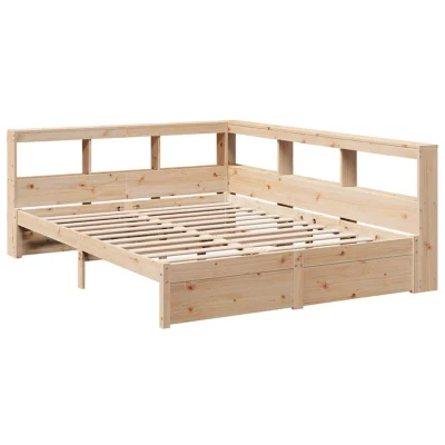 ManoManoGeneral description Get a better restful night's sleep with this bookcase bed! It makes a welcoming addition to any bedroom, combining functionality and style. The bed features a stable and long-lasting frame made from solid pinewood, known for its strength and durability. Its rustic charm is enhanced by the straight grains and distinctive knots. The slatted base provides optimal support and breathability for your mattress, while the built-in storage in the headboard keeps books and essentials organized and within reach. Technical specifications Material: Solid pinewood (untreated) Overall dimensions: 218.5 x 178.5 x 80 cm (L x W x H) Bed frame dimensions: 205.5 x 165.5 x 31 cm (L x W x H) Suitable mattress size: 160 x 200 cm (W x L) (mattress not included) Bookcase headboard dimensions: 178.5 x 218.5 x 80 cm (L x W x H) Assembly required: Yes With slatted base With storage shelves L-shaped design Other information Delivery contains: 1 x Bed frame, 1 x Bookcase headboard SKU: 3324348