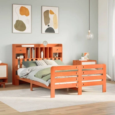Bookcase Bed without Mattress Wax Brown 140x190 cm Solid Wood Pine vidaXL