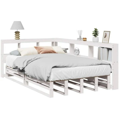 ManoManoGeneral description Get a better restful night's sleep with this stylish bookcase bed! It makes a welcoming addition to any bedroom while providing ample storage space for books, decorative items, and essentials, keeping everything organized and within reach. Technical specifications Colour: White Material: Solid pinewood Overall dimensions: 218.5 x 138.5 x 80 cm (L x W x H) Bed frame dimensions: 200 x 120 x 25.5 cm (L x W x H) Suitable mattress size: 120 x 200 cm (W x L) (mattress not included) With slatted base Bookcase headboard dimensions: 218.5 x 138.5 x 80 cm (L x W x H) Suitable for mattress width: 120 cm Assembly required: Yes Compatibility and accessories A mattress is not included with this bed. Various selections of mattresses are available in our shop. Installation Flexible assembly options allow you to place the long side of the headboard on either the left or right side to match your bedroom space. Usage This L-shaped headboard fits snugly against the bed, creating a