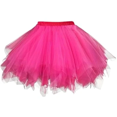Boolavard Adult Women 80's Tutu Skirt Layered Tulle Petticoat Halloween (UK, Alpha, XXL, 3XL, Regular, Rose Red)