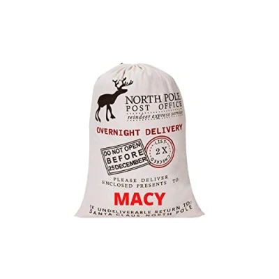 Personalise with any name To personalise please leave desired name in the gift message box UNIQUE DESIGN - Strong cord drawstring top to tighten the sack up to hide the presents inside, easy to open and close, convenient to carry and light weight. MULTI-USE - An adorable way to "wrap" under-the-tree gifts, wedding candy, Christmas candy. Can be filled with anything from candy to gifts. Also you can personalize and named the sacks by handwriting for embroidering, more choice for you. CHRISTMAS PATTERN - Anti Winkle, High Standard Product with Christmas designs.