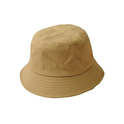 Boolavard Unisex 100% Cotton Packable Summer Travel Bucket Beach Sun Hat (S M, Khaki)
