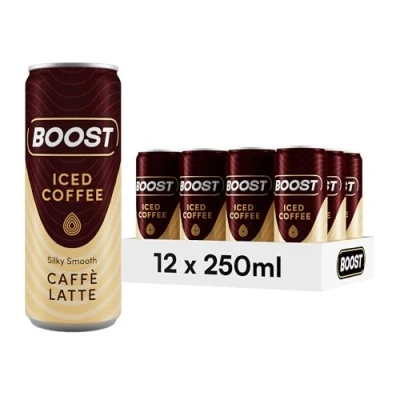 Boost Iced Coffee Cans Caffe Latte 12 Canned Drinks with High Caffeine, Arabica and Robusta Beans Milk Ice Bulk Gluten Free Flavoured Multipack 12x250ml