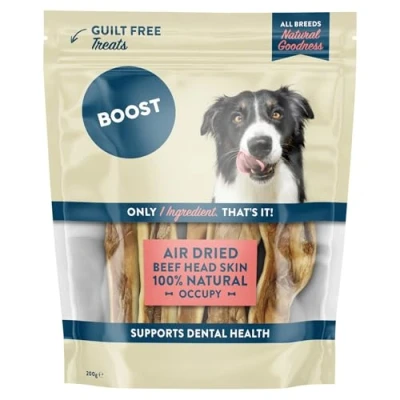 BOOST Pet Beef Head Skin Air Dried Grain Free Treats for Dogs, 100% Natural Dog Chews, Single Ingredient Real Skin, High in Protein, No Preservatives 200 Grams