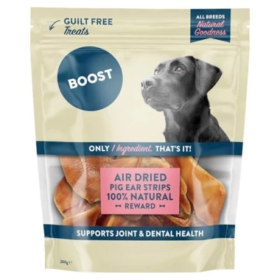 BOOST Pet Pig Ear Strips Air Dried Grain Free Treats for Dogs, 100% Natural Dog Chews, Made with Real Ears, High in Protein, No Preservatives 200 Grams