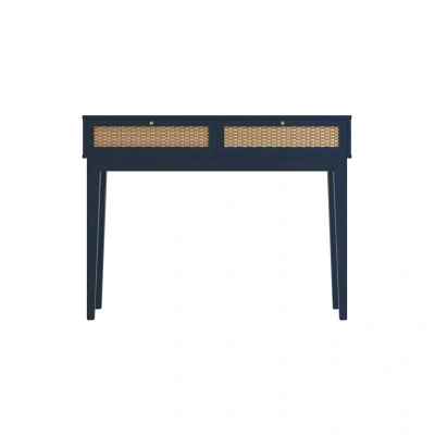 ManoManoThe Bordeaux Dressing Table comes with two spacious drawers, perfect for storing your accessories. The eye catching rattan effect front adds a touch of natural elegance, while the gold handles enhance its luxurious appeal. The deep blue frame and table top adds a sleek and stylish element to the design, making. it the perfect addition to any room in a home. Dimension & Weight Dimension: L32 x W110 x H84.5 cm Weight: 21.5 kg . Bordeaux Blue Dressing Table . Delivery is FREE to UK mainland excluding the following postcodes, where a surcharge may apply. AB, DD, HS, IV, KW1-14, KY, PA1-19, PA20+, PH, W1, NW1, WC1, WC2, EC1, EC2, EC3, EC4, E1, SE1, SE11.. 3#5