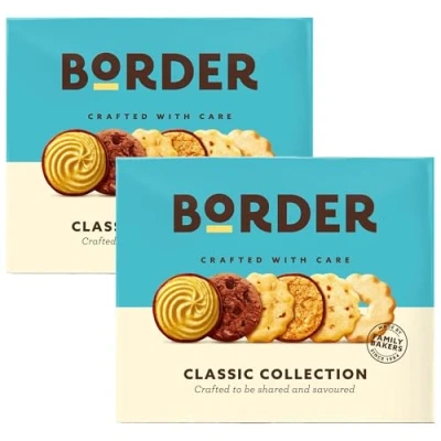Classic Biscuit Selection: Enjoy Border’s finest assortment of traditional biscuits, including Chocolate Viennese, Butterscotch Crunch, Shortbread Rings, and more, crafted to please every taste. Two Large 400 g Boxes: This pack includes 2 generous 400 g boxes, ideal for sharing at home, in the office, or during meetings and gatherings. Made with Quality Ingredients: Each biscuit is baked in the UK using responsibly sourced ingredients for a rich, authentic flavour and perfect crunch. Suitable for Vegetarians: A premium selection suitable for vegetarians, with no artificial flavours or colours, offering a wholesome indulgence you can enjoy with confidence. Perfect for Sharing & Gifting: Ideal for tea breaks, hospitality trays, or gifting, the Border Classic Collection adds a touch of quality and variety to any occasion.