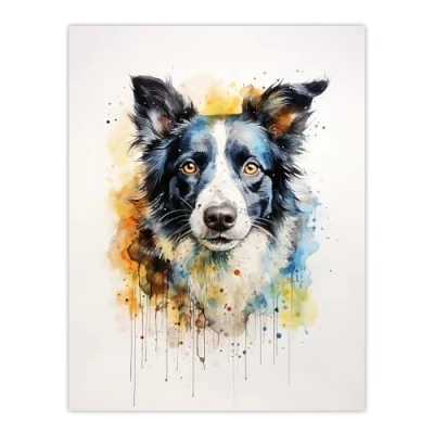Border Collie Dog Lovers Gift Watercolour Pet Portrait Painting Artwork Extra Large XL Wall Art Poster Print