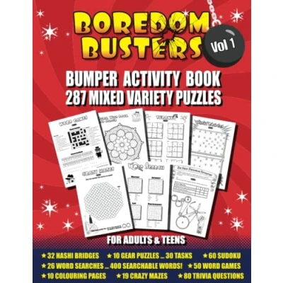 Boredom Busters Vol 1 Bumper Activity Book 287 Mixed Variety Puzzles for Adults & Teens: Including Sudoku, Hashi Bridges, Mazes, Crosswords, ... Searches, Anagrams Cryptograms (UK Edition)