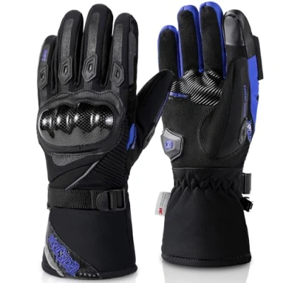 BORLENI Waterproof Motorbike Gloves, Carbon Fiber Water Warm Touch screen Motorcycle Gloves For Mens Women Ladies Blue XL