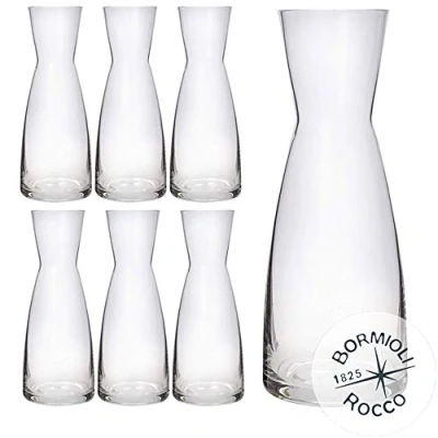 Bormioli Rocco Ypsilon Clear Carafe Set of 6 Pieces 1 Litre Star Glass Made in Italy Features: - Modern and refined design; - Brightness; - Elegance; - Practical (comfortable grip); - High stability; - Flexibility and resistance to use; - Easy care; - Dishwasher safe. Carafe made of Star Glass, a particularly pure and transparent glass, environmentally friendly and lead-free. All items are characterised by a modern and vivid design, ideal for serving drinks at the table and shaped to allow a good grip. The wide mouth of the jug makes it easy to fill. Dishwasher-safe. Star Glass: a new chemical composition, achieving unrivalled glass purity and transparency in an environmentally friendly way. The uses of this decanter go far beyond simple water and drink serving, the pattern is indicated for countless uses: vase, flower holder, candle holder, decorative element etc. Made in Italy.