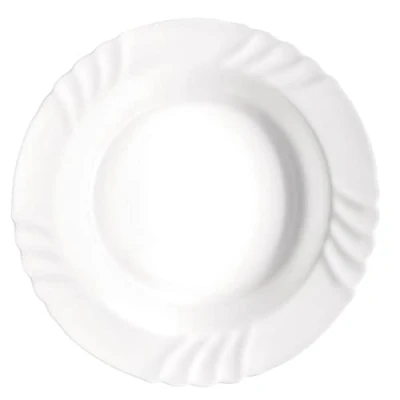 Bormioli Ebro 32 cm Round White Opal Bowl Timeless, classic design with ripples on the brim Perfect for everyday tables thanks to its lightness and resistance is stackable with the pieces of the same shape 100% hygienic Microwave safe Dishwasher safe