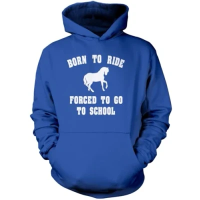 Born to Ride Forced Go School Unisex Hoodie Horse Rider Horsey Pony Stables M Blue