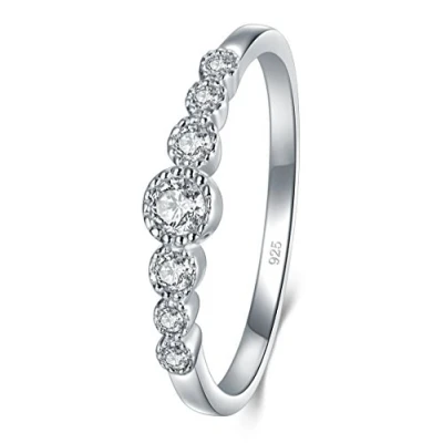 BORUO 925 Sterling Silver Ring, Cubic Zirconia CZ Eternity Engagement Wedding Band Silver,