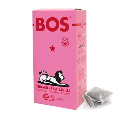 FRUITY DELIGHT: Indulge in a smooth and fruity tea experience with real strawberries, organic Rooibos blend for a South African taste sensation CAFFEINE-FREE: Enjoy the delicious flavours of strawberry and vanilla without any caffeine, perfect as a calming evening beverage choice FEATURES: Each carton contains 20 tea bags filled with high-quality ingredients for an organic and delightful brew TASTE EXPERIENCE: Immerse yourself in the sweet and aromatic blend of strawberry & vanilla essence with each sip; perfect hot or cold BENEFITS: BOS Rooibos Tea is rich in antioxidants which promote well-being whilst offering a unique taste experience to soothe your senses