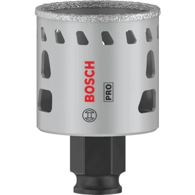Features: Lasts up to 2x longer than a standard Diamond Hole Saw Long Life cutting holes in tiles Bosch Power Change makes removing material plugs and changing hole saws easier and faster. Continuous rim of the cutting edge makes it easy to handle and facilitates an angled start. Brazed bond between grits and body for maximum strength. Heat slots below rim dissipate unwanted heat buildups, ensuring long-lasting performance. High-quality diamond grits for durability hardest and toughest materials. For use with the Bosch Power Change Plus keyless arbor: offering accuracy and robustness Getting a good hole in hard tiles, stone, or even glass is a tricky task for any professional, but with your skill and the PRO Tile Hole Saw you can approach the job with confidence. Quality diamond grits on a continuous rim mean you can start cutting at an angle and you don't even need a guide. The PRO Tile offers highly effective design and durability. The brazed bonds between grits and body are strong.