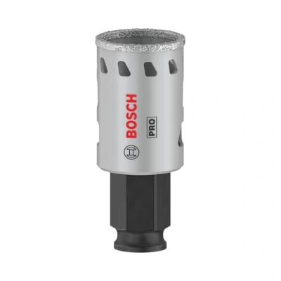 Features: Lasts up to 2x longer than a standard Diamond Hole Saw Long Life cutting holes in tiles Continuous rim of the cutting edge makes it easy to handle and facilitates an angled start. Heat slots below rim dissipate unwanted heat buildups, ensuring long-lasting performance. High-quality diamond grits for durability hardest and toughest materials. Bosch Power Change makes removing material plugs and changing hole saws easier and faster. Brazed bond between grits and body for maximum strength. For use with the Bosch Power Change Plus keyless arbor: offering accuracy and robustness Getting a good hole in hard tiles, stone, or even glass is a tricky task for any professional, but with your skill and the PRO Tile Hole Saw you can approach the job with confidence. Quality diamond grits on a continuous rim mean you can start cutting at an angle and you don't even need a guide. The PRO Tile offers highly effective design and durability. The brazed bonds between grits and body are strong.