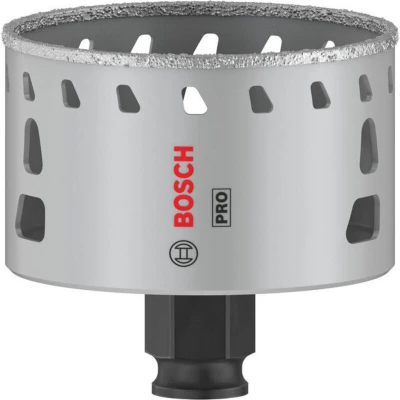 Features: Lasts up to 2x longer than a standard Diamond Hole Saw Long Life cutting holes in tiles Brazed bond between grits and body for maximum strength. Heat slots below rim dissipate unwanted heat buildups, ensuring long-lasting performance. Bosch Power Change makes removing material plugs and changing hole saws easier and faster. Continuous rim of the cutting edge makes it easy to handle and facilitates an angled start. High-quality diamond grits for durability hardest and toughest materials. For use with the Bosch Power Change Plus keyless arbor: offering accuracy and robustness Getting a good hole in hard tiles, stone, or even glass is a tricky task for any professional, but with your skill and the PRO Tile Hole Saw you can approach the job with confidence. Quality diamond grits on a continuous rim mean you can start cutting at an angle and you don't even need a guide. The PRO Tile offers highly effective design and durability. The brazed bonds between grits and body are strong.