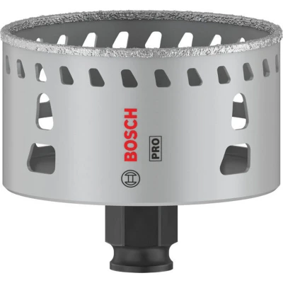Features: Lasts up to 2x longer than a standard Diamond Hole Saw Long Life cutting holes in tiles Bosch Power Change makes removing material plugs and changing hole saws easier and faster. Continuous rim of the cutting edge makes it easy to handle and facilitates an angled start. Brazed bond between grits and body for maximum strength. Heat slots below rim dissipate unwanted heat buildups, ensuring long-lasting performance. High-quality diamond grits for durability hardest and toughest materials. For use with the Bosch Power Change Plus keyless arbor: offering accuracy and robustness Getting a good hole in hard tiles, stone, or even glass is a tricky task for any professional, but with your skill and the PRO Tile Hole Saw you can approach the job with confidence. Quality diamond grits on a continuous rim mean you can start cutting at an angle and you don't even need a guide. The PRO Tile offers highly effective design and durability. The brazed bonds between grits and body are strong.